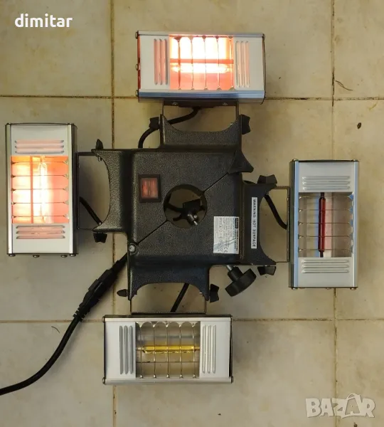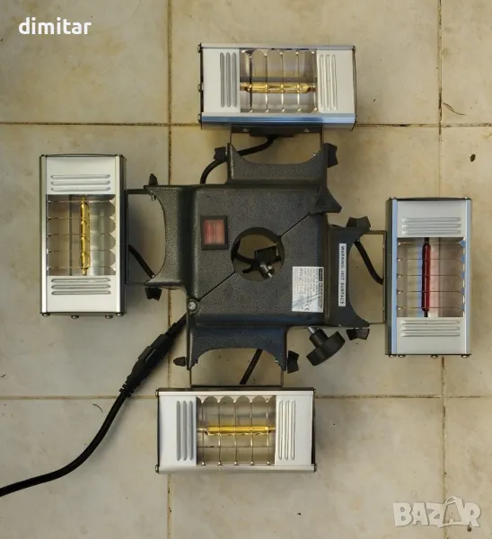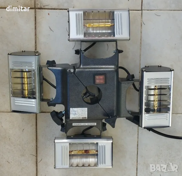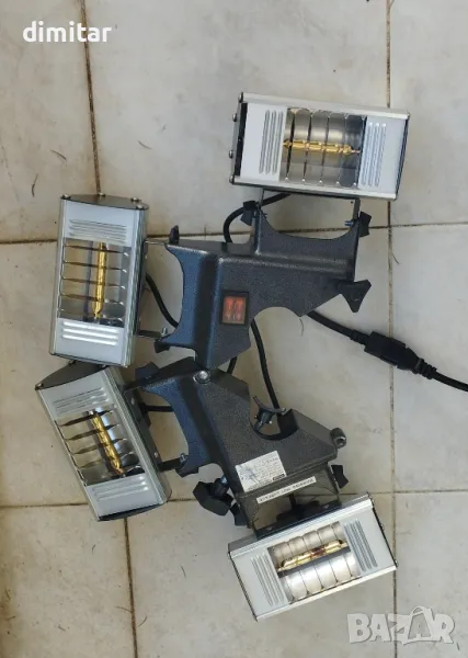 Електрически комплект нагреватели за беседка, навес, чадър, градина. 4х250W макс, лесен монтаж, позлатени ампули, едната е подменена и новата свети по силно, подарявам и една резервна