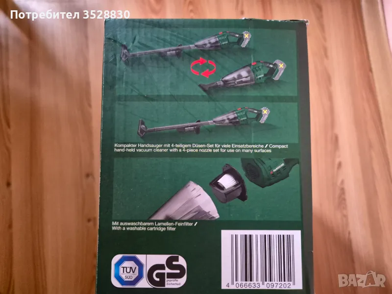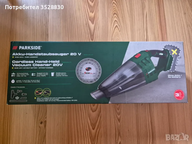 Parkside Акумулаторна Носима Прахосмукачка за сухо и мокро почистване 20V модел PHSSA 20-Li C1. Прахосмукачката е закупена от Lidl България, като е чисто нова и запечатана в оригиналното си кашонче. Съответно има 3 години гаранция важаща до 01.2029г. За повече информация на лично съобщение или на телефон.