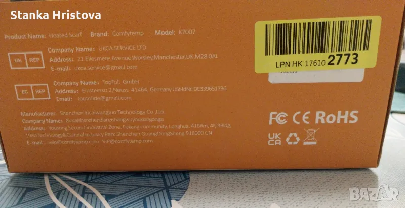 Продавам Електрически безжичен Шал, много мек и комфортен за зимните дни . Внос от Германия.