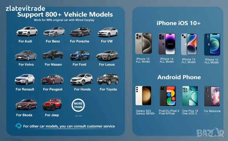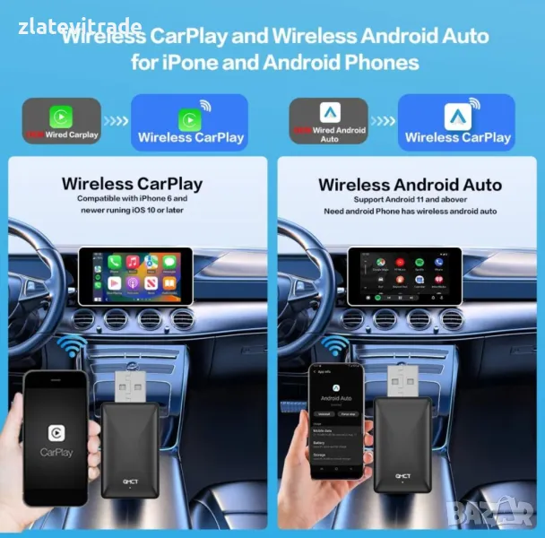 1) Автомобилът трябва да има фабричен / жичен Android Auto / CARPLAY !