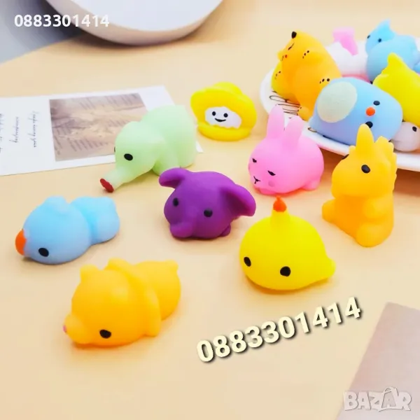 Децата наистина ги обожават, защото могат да си играят с тях или да ги лепят на телефонаМогат да ги разтягат или мачкатЦвят: бял, син, розов, жълт, цикламен, зелен, лилав, червен, кафяв, сив, оранжевРазмери: 4 см