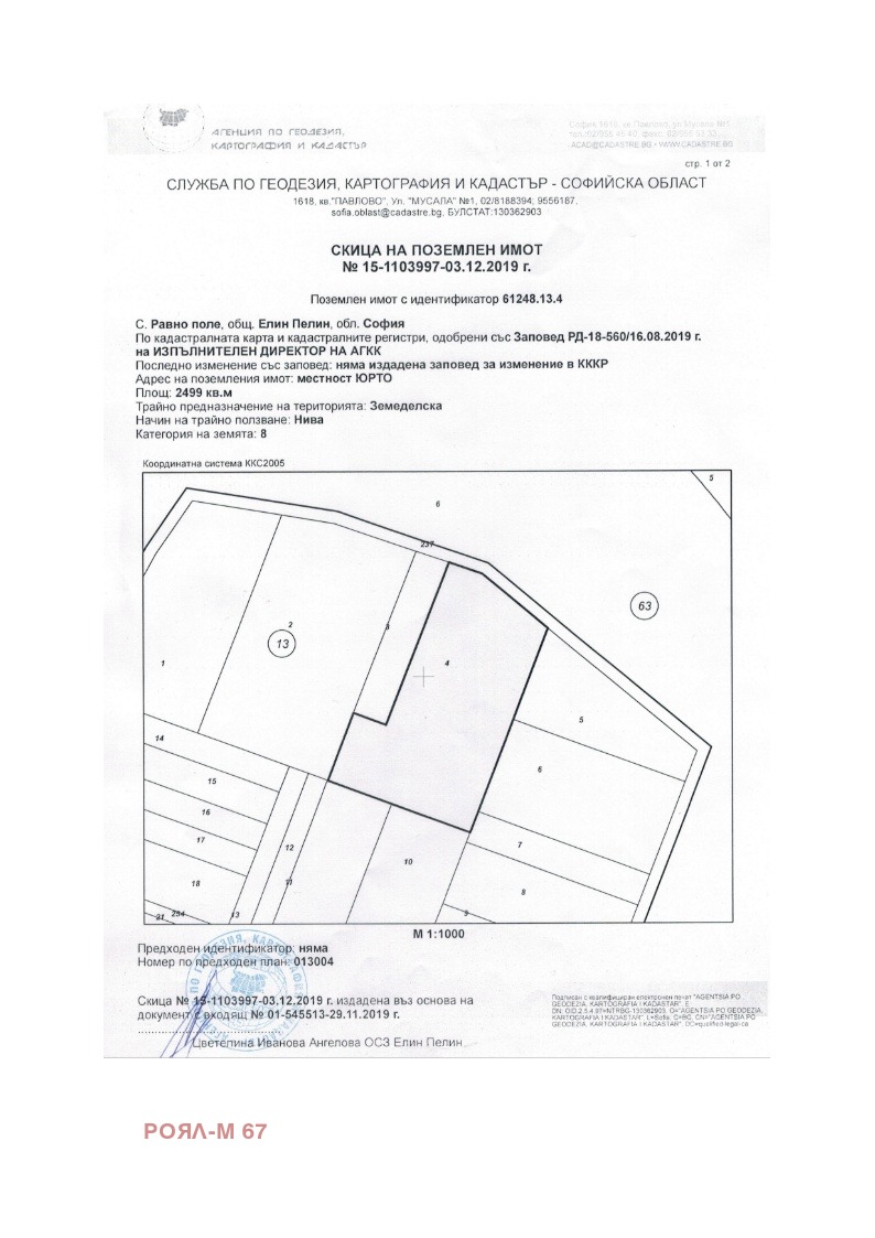 Продава ПАРЦЕЛ, с. Равно поле, област София област → Обява 47407477