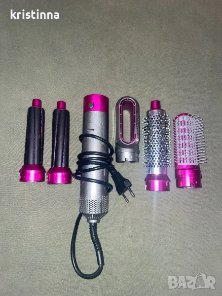 Реплика на хитовия сешоар за оформяне Dyson с няколко приставки. Работи напълно в изправност просто ми е подарък и не ми е необходим.