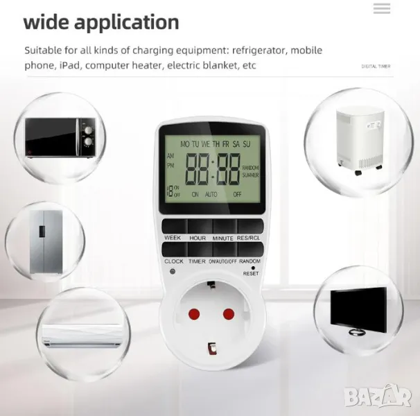 Полезна защита за безопасност - Цифровият таймер се използва по време на ваканции за домашно осветление или телевизор, просто го програмирайте да се включва и изключва в определени часове на деня, за да предотвратите влизането на крадци в дома Ви.