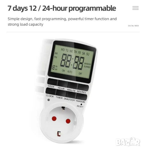 Полезна защита за безопасност - Цифровият таймер се използва по време на ваканции за домашно осветление или телевизор, просто го програмирайте да се включва и изключва в определени часове на деня, за да предотвратите влизането на крадци в дома Ви.
