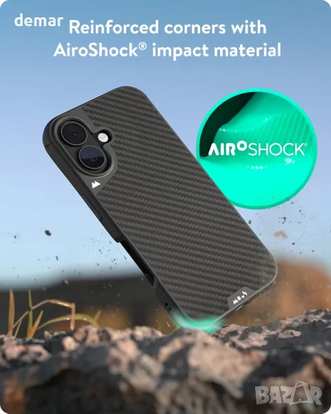 калъф предлага абсорбираща удара AiroShock технология с подсилени ъгли и здрави материали за защита от падане. Той е безпроблемно съвместим с MagSafe, осигурявайки силна магнитна връзка за безжично зареждане и магнитни аксесоари. Проектиран с десетилетие на иновации, той съчетава елегантен дизайн със здрава защита, включващ стратегически изрез и набраздени ребра за захващане за допълнителна функционалност.