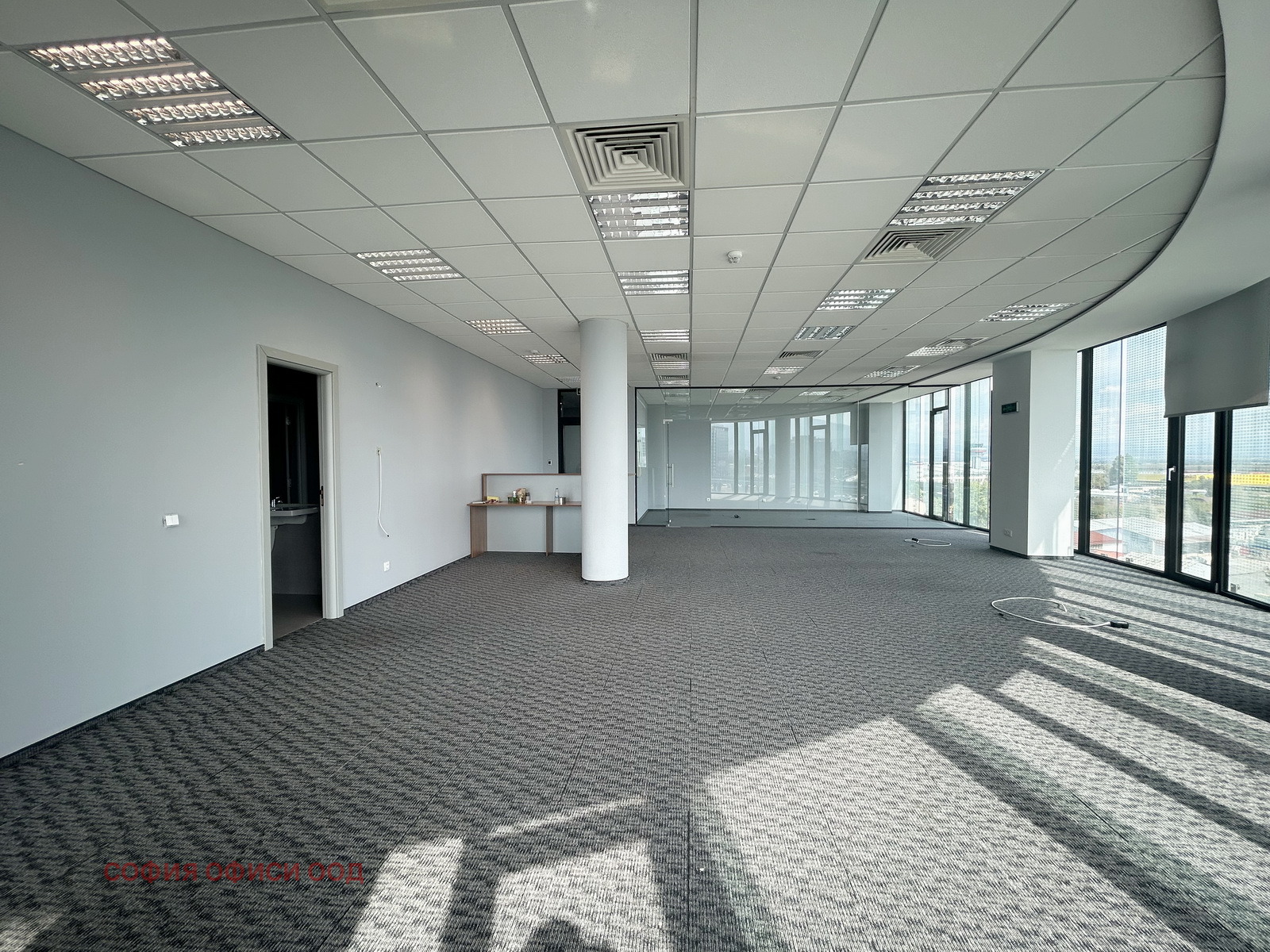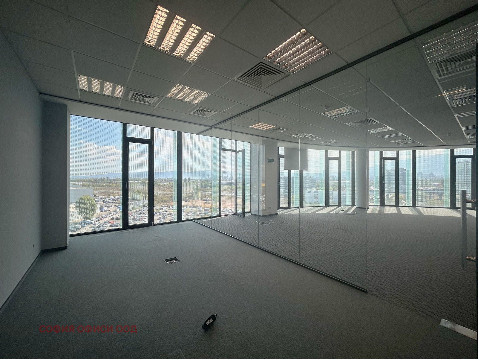 Офисът разполага с отваряеми прозорци, окабеляване в подови кутии и вътрешни щори за удобство.