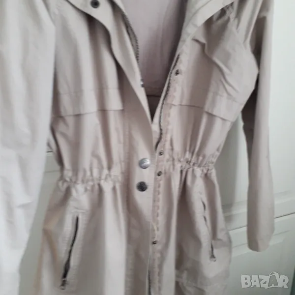 Дамски шлифер - бежов на цвят. С качулка. Закопчава се с цип и копчета тик-так. Номер 46. Без дефекти и петна.