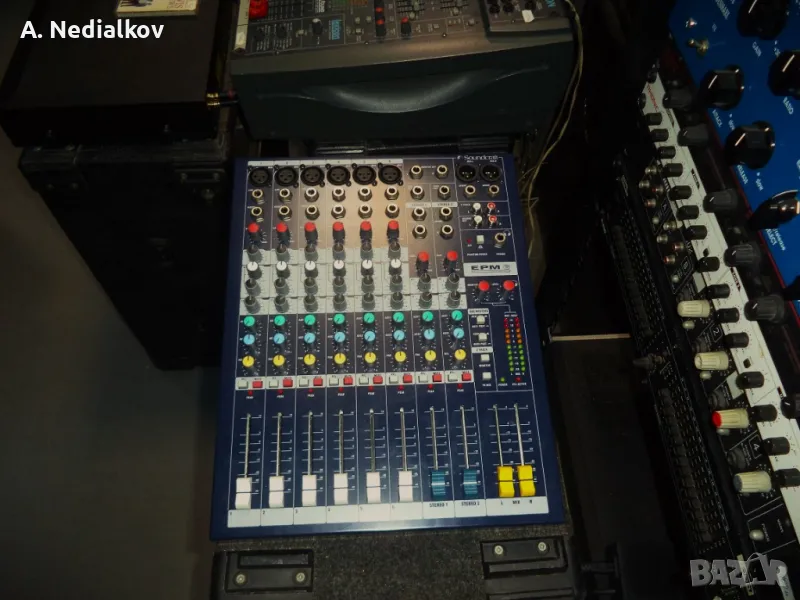 Продавам отличен професионален аудиомиксер модел - Soundcraft EPM-6 /6 микрофонни + 2 стерео канала/ параметричен еквилайзер и 2 aux на канал.Няма вграден ефект но има отделно няколко ефекта на Behringer,Lexicon и Yamaha !Може да се види и пробва в музикалния магазин Ултрамюзик София кв.Хиподрума.