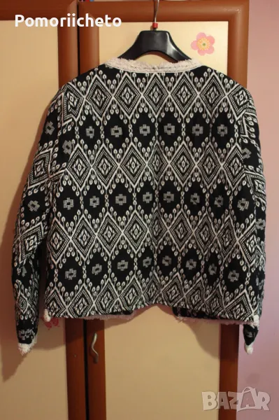 Отлично състояние, няма забележки, не е носено.Леко ватирано, без копчета и ципове, с декоративни реснички по ръкавите и около деколтето.