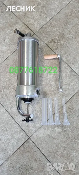 Комплекта съдържа 4 фунии за пълнене с различен диаметър ф15,ф19,ф22,ф25 и има вградена скоба