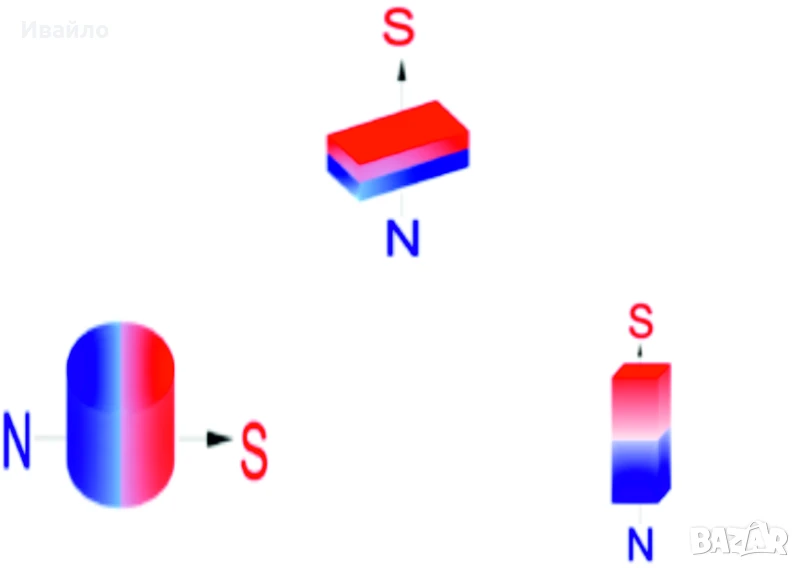 Правоъгълни 15 x 10 x 5мм. N45 Разполагамсъс 12бр. цена за бр.1.60лв.Намагнитени двуполюсно по оста N