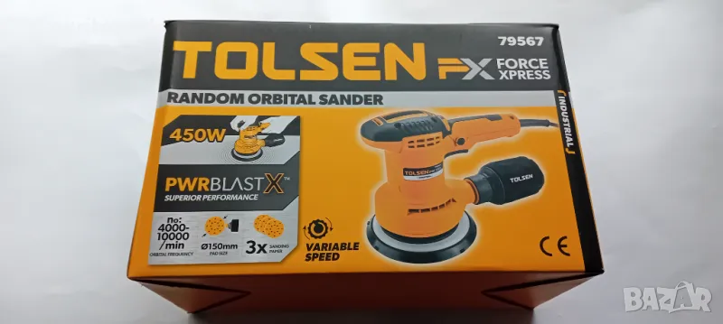 Предлагам чисто нов ексцентър шлайф , марка Tolsen със следните технически данни: