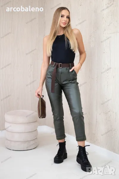 Восъчен панталон с колан е стилно и модерно предложение за хора, които ценят модерната визия и комфорта. Изработени от материал с восъчна, леко блестяща текстура, те придават на стайлинга смел и елегантен характер. Вталената кройка подчертава силуета, а коланът на талията придава изразителност на цялото и осигурява перфектно прилягане. Тези панталони ще работят чудесно в ежедневни и по-изискани комплекти, както за ежедневието, така и за вечерни излизания, предлагайки уникална, модерна визия. Размерът е универсален и ще бъде подходящ за жени, носещи размери S, M или L.
