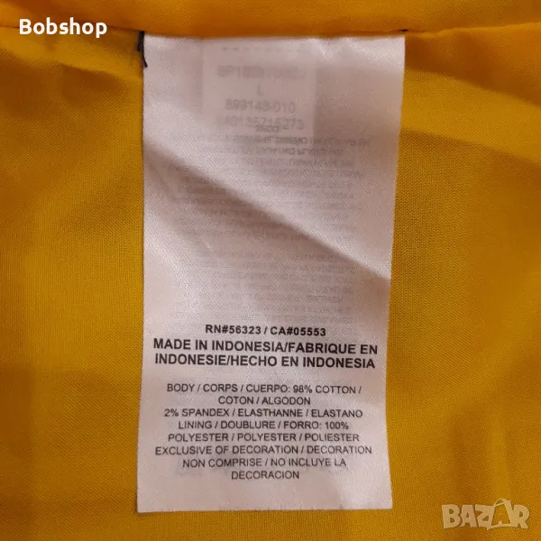 Отлично състояние, оригинален продукт, размер по етикет L, материя външна част 98% памук и 2% спандекс, подплата 100% полиестер, два основни джоба на лицевата част и един допълнителен с цип, щампирано лого на лицевата част и гърбът, ципове укк, произведено в Индонезия.