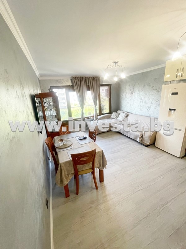 Оферта 42634. Тристаен, напълно обзаведен апартамент с сграда, построена 2018 г., с асансьор и луксозни общи части. Продава се във вида, в който е на снимките с всички мебели и ел.уреди. Състои се от хол с трапезария и кухненски бокс, две спални, баня с тоалетна, коридор и две тераси. Изложение юг-север. Монтирани са климатици и СОТ. Кухнята е с нови уреди и мраморни плотове. Има хладилник, пералня съдомиялна, печка, керамични котлони. Телевизор в хола и кожена италианска холова гарнитура. Едната тераса е обширна на двете спални с панорама към младежки хълм, другата е на хола с изглед към Родопите. Обзавеждането е изработвано по поръчка. За контакти: Весела Кондова 0888527872. Други оферти, предлагани от агенцията може да разгледате на www.investa.bg.