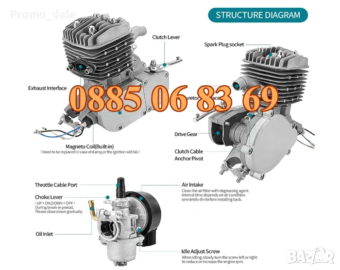 Руски Двигател за колело 80 кубика, Бензинов велодвигател за велосипед