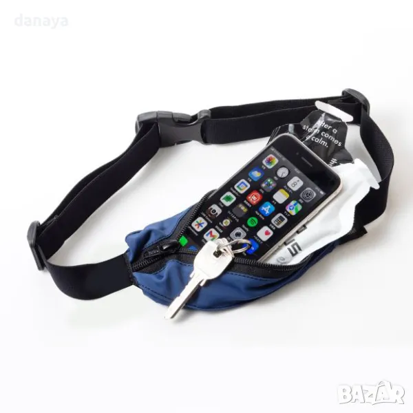 Еластичен колан чанта за телефон, документи, пари, ключове. Еластична спортна чанта за кръста тип портмоне. Модерен спортен колан чанта 2 в едно. Изработен от супер еластична и лека материя. С регулируема каишка. В нея може да държиш най-необходимите неща като документи, пари, козметика и телефон. Тази спортна чантичка е идеална за тренировки, фитнес, за разходки, мероприятия, концерти и всякакви други ангажименти, в които искаш ръцете ти да са свободни и да се чувстваш сякаш не носиш нищо със себе си.