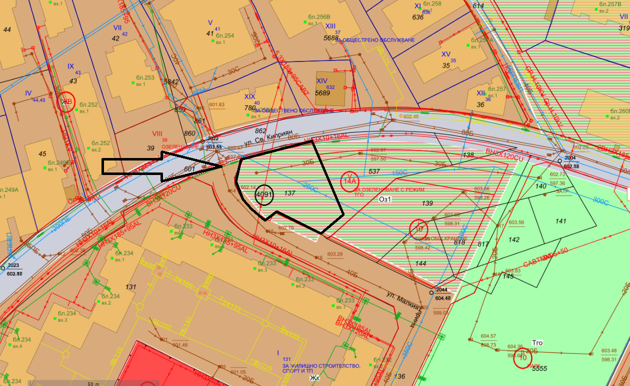 Продава поземлен имот ПИ в зона Оз1. Застроява се със сгради за обществено обслужване. Допуска се до 40 % от общата разгъната застроена площ в урегулирания поземлен имот да бъде с жилищно предназначение. От озеленената площ мин. 50 % е с висока дървесна растителност. Плътност на застрояване 30%, КИНТ-1.2, Мин. озеленена площ 50%.