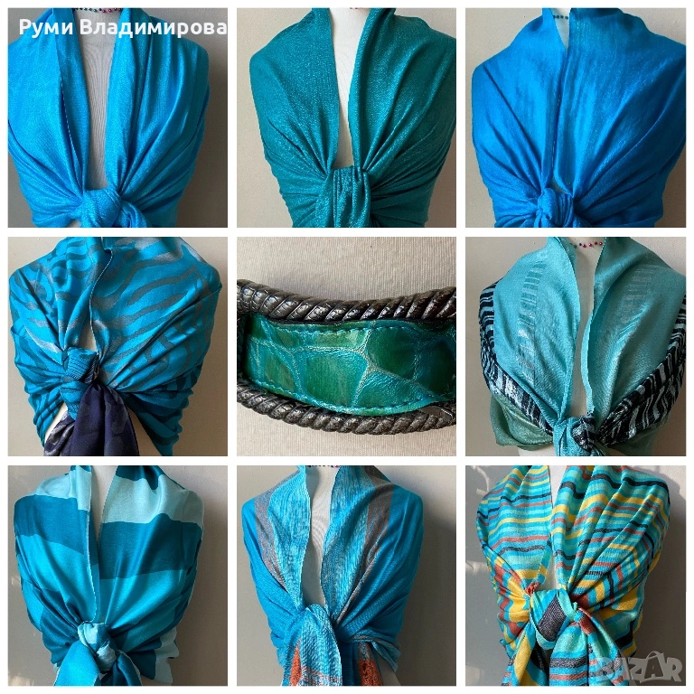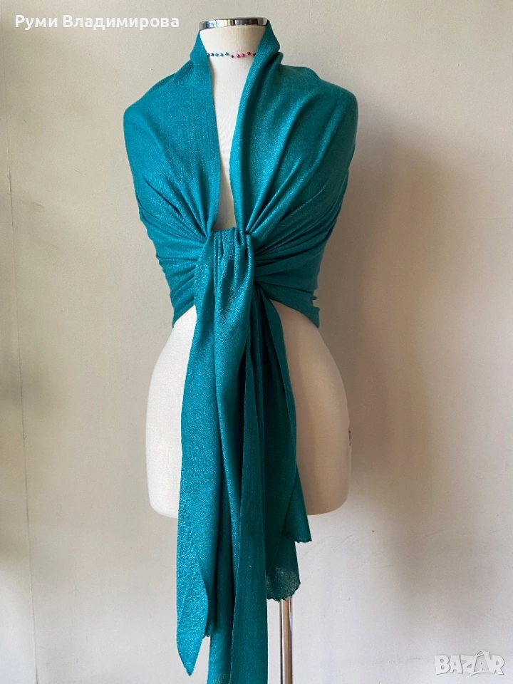 Тюркоазено син шал от коприна, кашмир, вълна, памук/ ралични видове