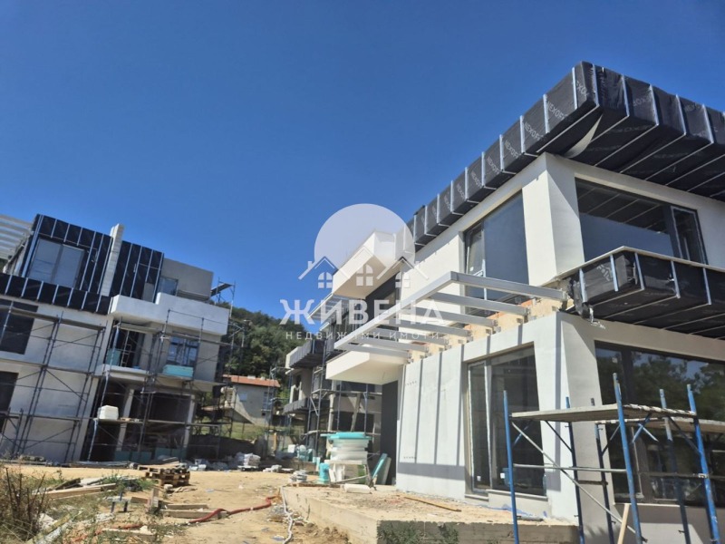Агенция Живена предлага за продажба триетажна къща с три или повече спални. Намира се в затворен комплекс от къщи в строеж, с басейн, оградена зелена територия, в м-т Траката, в близост до кв. Виница, град Варна. Къщата е със двор 557 кв.м, с РЗП: 341 кв.м и има следното разпределение: ПЪРВИ етаж (95.90 кв.м) - входно антре, дневна с кухненски бокс, трапезария, тоалет, килер, гараж. Стълбище води до ВТОРИ етаж (119.30 кв.м), където са разположени коридор, 3 спални с гледка зеленина и басейн, 2 бани с тоалетна, гардеробна, перално помещение, два балкона. ТРЕТИ етаж (126.00 кв.м) включва дневна с кухненски бокс и трапезария, стълбище, килер, тоалетна, тераса, като този етаж може да бъде преустроен в две или повече спални. Къщата се издава по БДС, а има опция за завършване до ключ. Край на строителството - декември 2026 г. Разсрочено плащане по индивидуална схема до края на строителството. Агенция Живена извършва необходимите проверки на имота, който сте избрали, организира всички етапи на сделката до нейното финализиране. Оказваме съдействие за отпускане на банков кредит. Оферта 6797