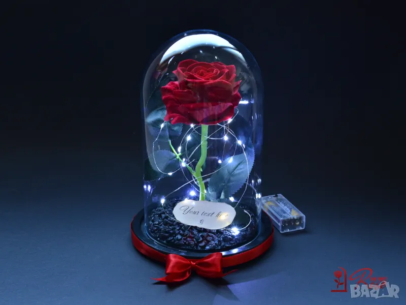 вечна роза в стъкленица с опция безплатни LED Светлини.