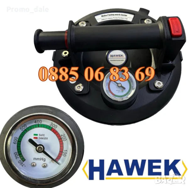 Вакуум за плочки, стъкла и гладни плоскости с помпа и манометър HAWEK