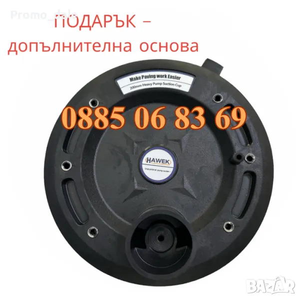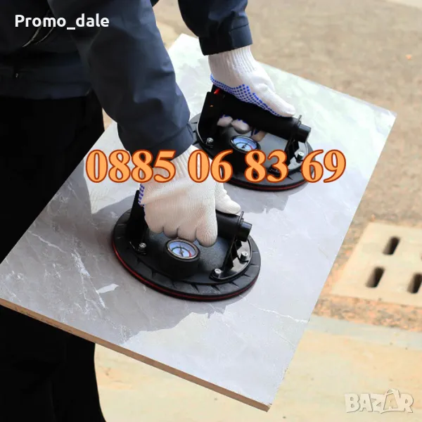 Единичен вакуум с помпа и манометър за гладки и текстурирани плочки. Вакуум чашка ф200. Максимален товар за повдигане 130 кг.