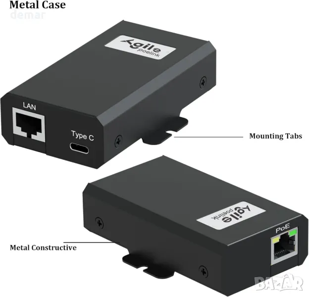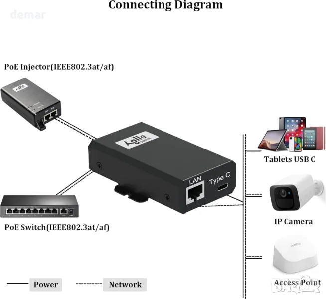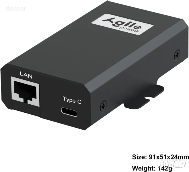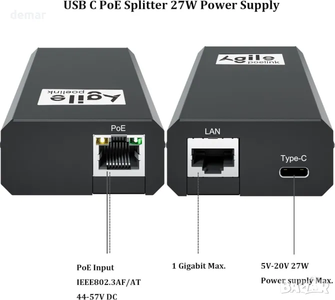 AgilePoElink Gigabit PoE сплитер към USB C, PoE+ конвертор за USB Type-C PD (5V-20V до 27W)