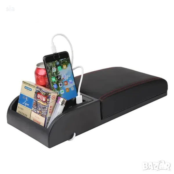 - 1 поставка за чаши, отделение за аксесоари, 2 USB порта, 1 кабел за зареждане.