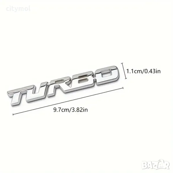 Универсална атрактивна метална емблема с надпис Turbo. Можете да поставите емблемата навсякъде по автомобила: багажника, калника, предния капак, вратите и други части. В задния край има здрава двойнозалепваща лента, която я придържа здраво към повърхността. Емблемата е със слънцезащитен и водоустойчив слой. Цветът остава постоянен, не избледнява и не надрасква боята на колата. Перфектна декорация със стилна изработка. Преди да поставите емблемата почистете добре повърхността от прах и мръсотия. Изработена от висококачествен хром метален материал.В комплекта има супер здраво двойнолепящо изрязано в същия профил като емблемата.