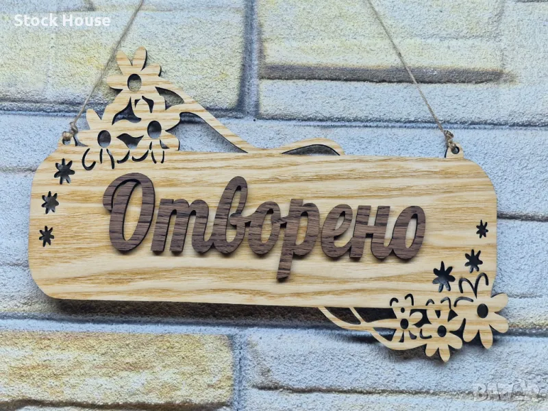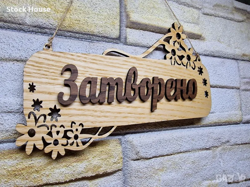 🌟Двустранна табелка за врата с текст "Отворено" от едната ѝ страна, а от другата - "Затворено", с възможност за добавяне на ваш телефон за контакт.