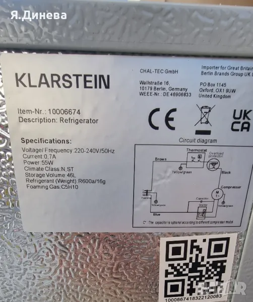 Хладилник Klarstein 46L за части → Обява 47420639