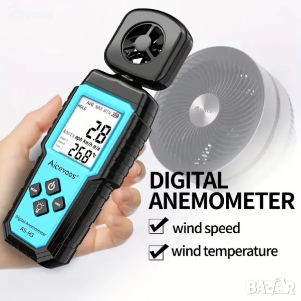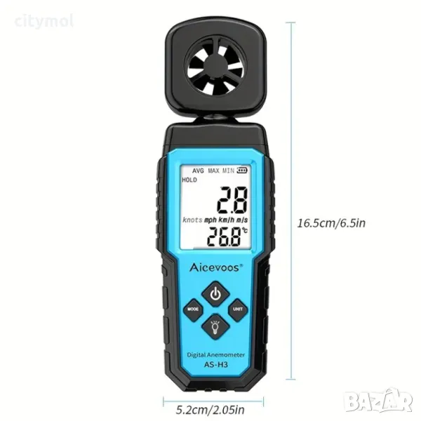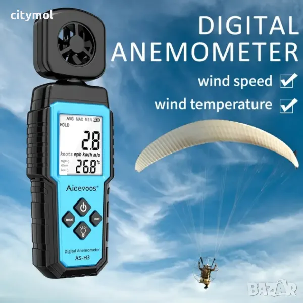 Анемометърът Aicevoosе изключително точен уред, предназначен за измерване на скоростта на вятъра , и е идеален за професионалисти, любители метеоролози или за спортни дейности.