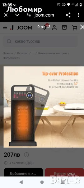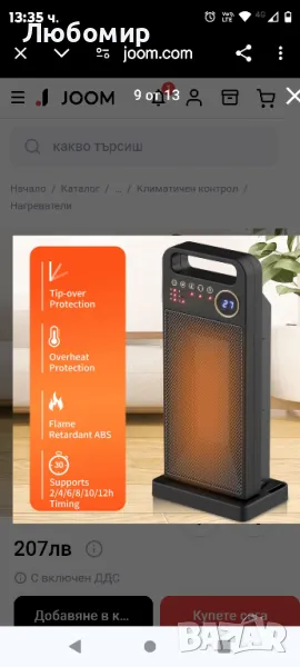 Само в бял цвят.Електрическият нагревател ще се изключи, след като бъде преобърнат на 30 градуса, за да се предотврати случаен пожар. Работата като нагревател и сушилня ви осигурява уютно и комфортно зимно време. Керамичният нагревател за малко пространство затопля вашите крака, ръце, лице и тяло, като същевременно затопля заобикалящата ви среда. Характеристика: Бързо нагряване Висококачествена керамична технология с бързо нагряване само за 3 секунди и ниско термично съпротивление. По-ефективен и по-дълъг експлоатационен живот. Насладете се на тишина, докато поддържате пространството си топло и уютно. Безопасен за използване Защита срещу преобръщане, защита от прегряване и калъф със забавяне на горенето. Без изгаряне, безопасен за употреба. 3 регулируеми режима Регулируеми предавки, с естествен вятър, ниска топлина и висока топлина, от които да избирате. Хуманизиран дизайнНагревателят поддържа въртене наляво и надясно и поддържа 2 часа, 4 часа, 6 часа, 8 часа, 10 часа и 12 часа. Дистанционно управлениеС дистанционно управление можете лесно да контролирате и регулирате, докато лежите на дивана.