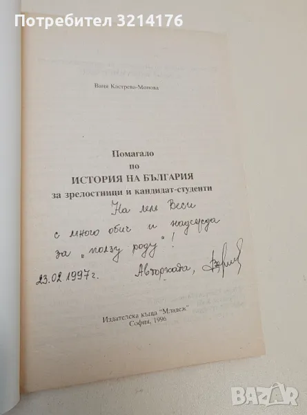 Помагало по история на България - Ваня Кастрева-Монова (с автограф) → Обява 47422043
