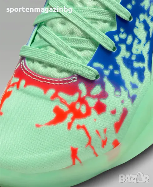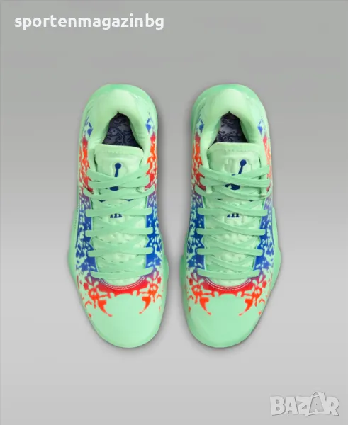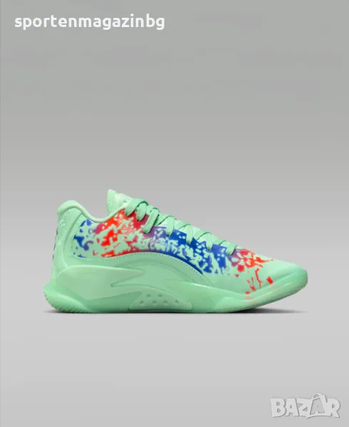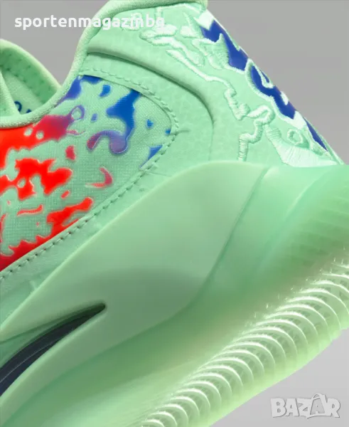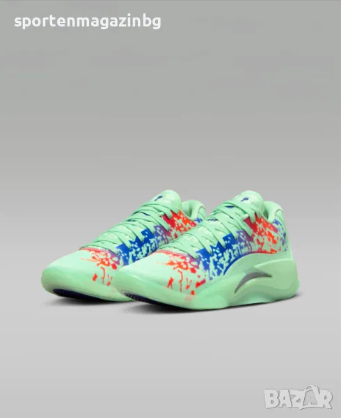 Издръжливата горна част, изработена от кожени, текстилни и синтетични материали ще ви осигури перфектна вентилация и невероятен комфорт. Нисък профил за по-голяма свобода при движение. Допълнително подсилени в областта на петата и пръстите за сигурност и стабилност. Лого Jordan отпредна езика и в задната част, както и ефектен надпис ZION отзад. Ярките цветове и щампи гарантират, че ще изпъкнете на игрището. В стелката е инжектирана Formula 23 - пяна предлагаща перфектен отскок, отлични омекотяващи свойства и анатомична опора за краката. Nike Air ви помага да постигнете тези мощни отскоци, когато излизате на подиума и добавя омекотяване при приземяване. Zion 3 е мек и отзивчив под краката, като ви помага да останете стабилни в движенията си. Отстрани, отляво надясно. Сцеплението тип "рибена кост" на външната подметка ви помага да захванете подиума с всяка стъпка, докато носещата пяна в междинната подметка добавя опора за глезена и петата ви.