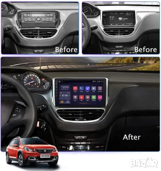 Мултимедия, за Peugeot 2008, 208, Двоен дин, Навигация, дисплей, 2 Дин, плеър, екран, Android, Пежо