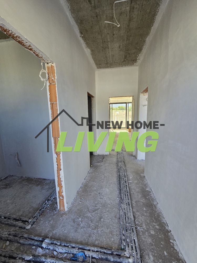 На първо ниво имаме просторна и слънчева всекидневна, баня с тоалетна, склад и гараж.