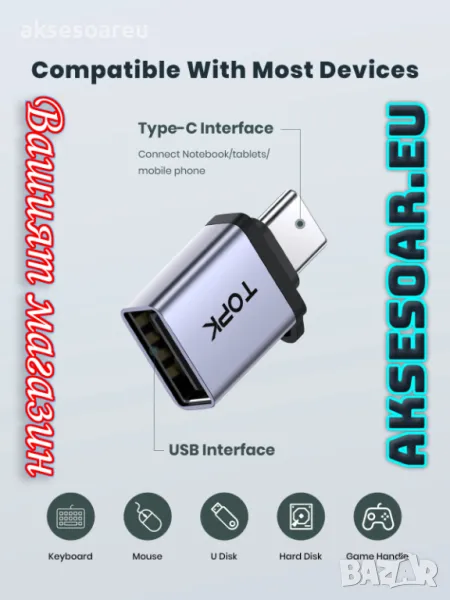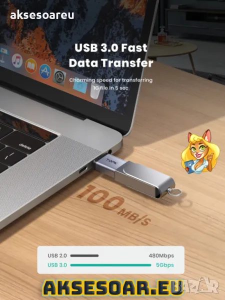Преходник от USB 3.0 към USB Type C адаптер OTG за флашки