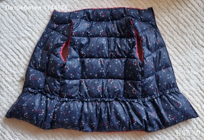 Топъл елек с две лица - в червено и синьо на ситни цветя. Носен е кратко време, няма забележки. Размер XS/S.