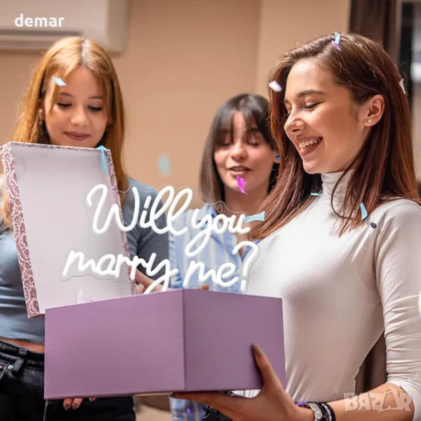 CoolGift Mart Неонова табела „Ще се омъжиш ли за мен“, Романтична LED неонова светлина, USB