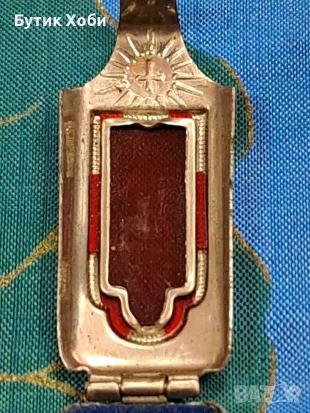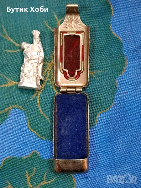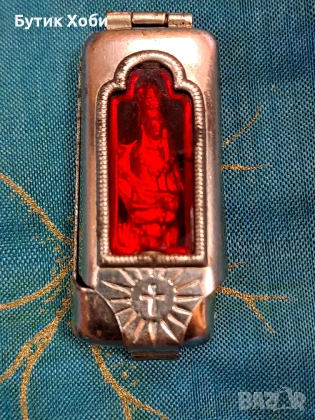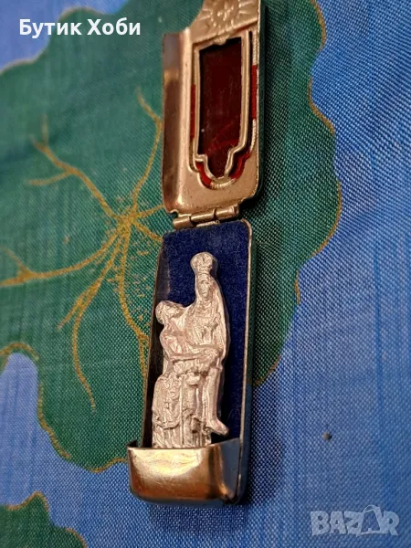 Уникален античен джобен католически,,храм,, светилище на пътници - малка кутийка с миниатюрна статуетка на Света Дева Мария и Исус. Изработени от сребриста твърда сплав.