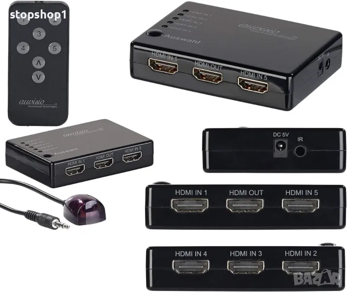 - За работа с до 5 HDMI източника на изображение на 1 монитор. HDMI 1.4: поддържа 4K UHD и 3D Full HD видео. Дистанционното управление изисква бутонна клетка CR2025 (не е включена)