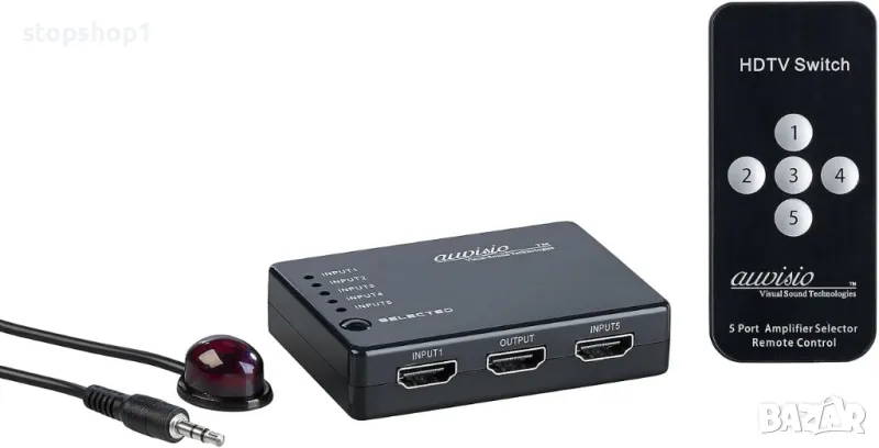 - 5-портов превключвател с 6 HDMI порта LED показва активен HDMI порт Връзки: 1x HDMI изход, 5x HDMI вход, женски за IR приемник, гнездо за универсално захранване (по избор, моля поръчайте)