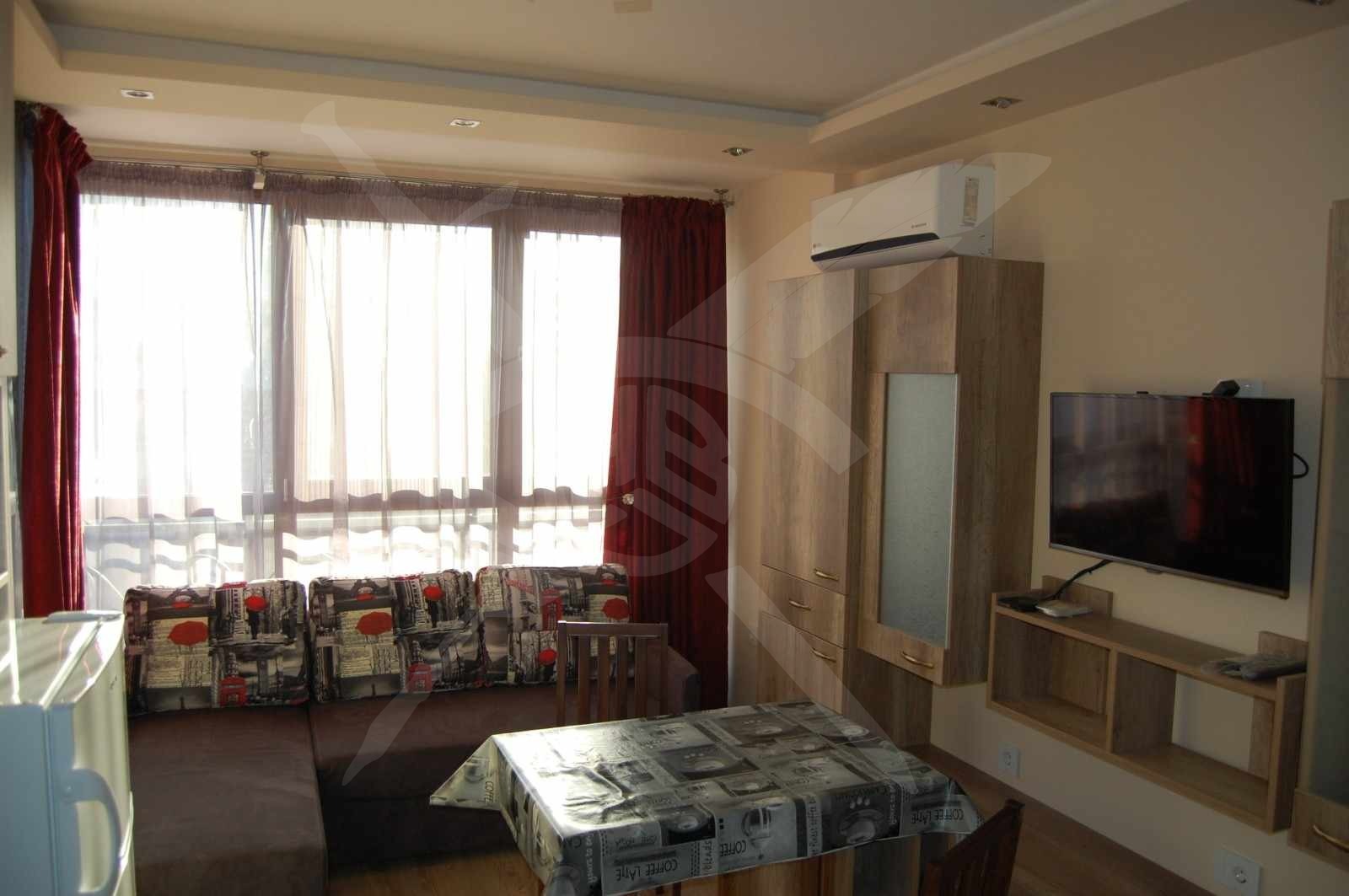 РАЗПРЕДЕЛЕНИЕ: Жилището разполага с площ от 45 кв.м., разпределена във входно антре, дневен тракт с кухненски бокс, спалня, тераса, баня и тоалетна.