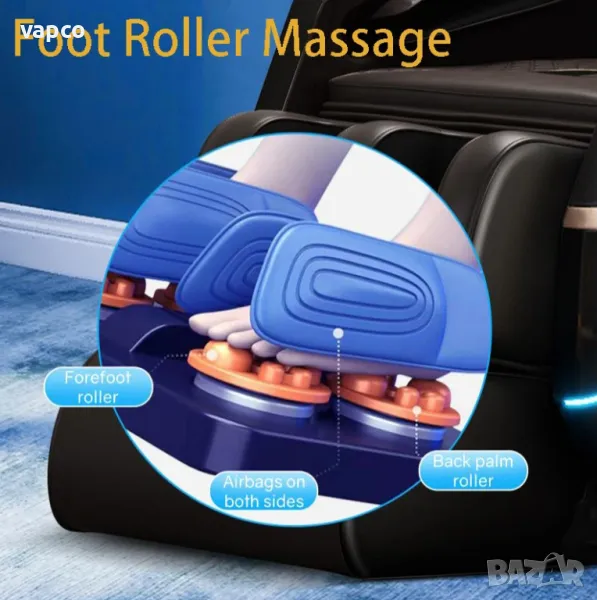 Столът предлага топлинен ролков масаж от врата до бедрата, чрез който се намалява чувството за хладнина и се подобрява отпускането на мускулите.