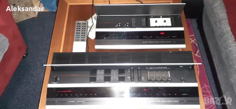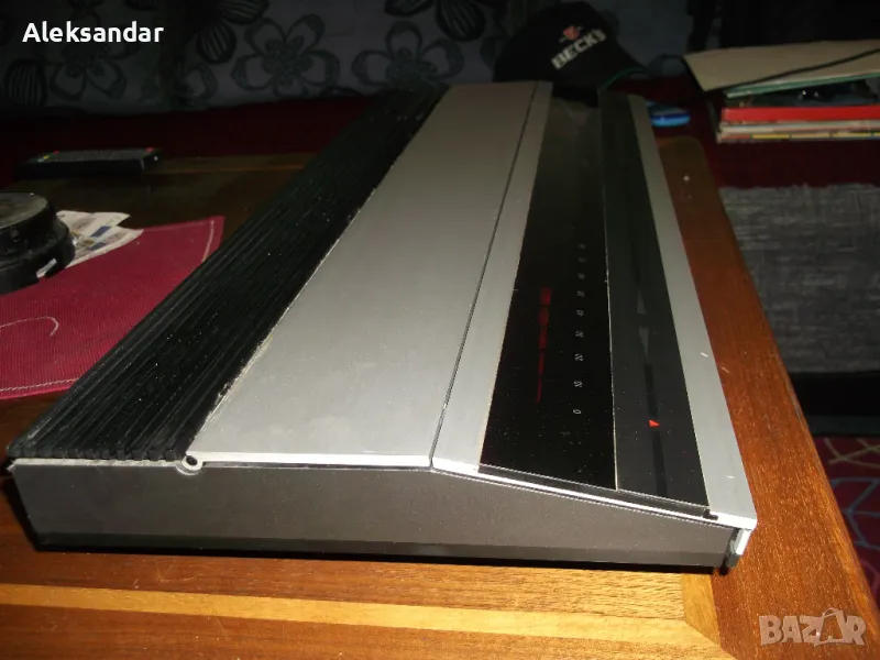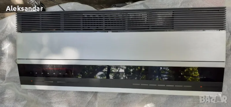 Продавам един малко екзотичен, но същевременно елегантен и привличащ вниманието радио усилвател на Bang&Olufsen от 80-те, който вярвам ще зарадва бъдещия си притежател. Beomaster 2000, е с прилична мощност от 2х25W на 8Ohm, напълно достатъчна да озвучава нормална стая, сензорно управление и система против претоварване, а ако някой желае да направи комплект, мога да му предложа и касетен дек Beocord 2000 в същия стил и серия, който съм показал в друга моя обява? Радио усилвателят изглежда запазен, без драскотини, подбитости или изтъркани копчета, т.е. добре съхранен през годините. Ресивърът притежава селективен тунер, ловящ станциите без антена и с опции за озвучаване на грамофон, CD или чрез компютър. Инфо за модела има примерно тук: