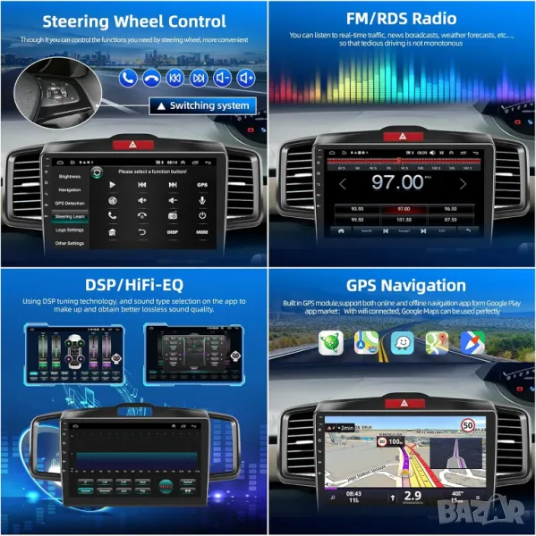 4GB+64GB цена 429.90лв, 8-ядрен процесор, Android Auto, CarPlay, Wi-Fi, RDS, AHD камера