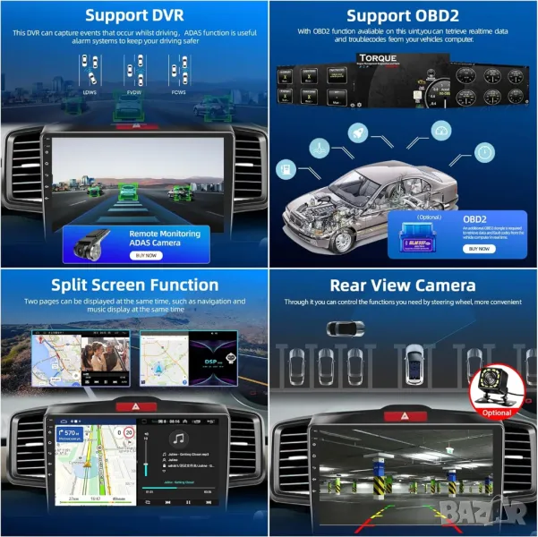 Wi-Fi интернет, новият Андроид, Bluetooth за разговори и музика, USB входове за флашка и зареждане на устройства, GPS навигация, теми за вид на меню, еквалайзер за настройка на звука, бърза реална RAM памет от ново поколение. ТОП дизайн!